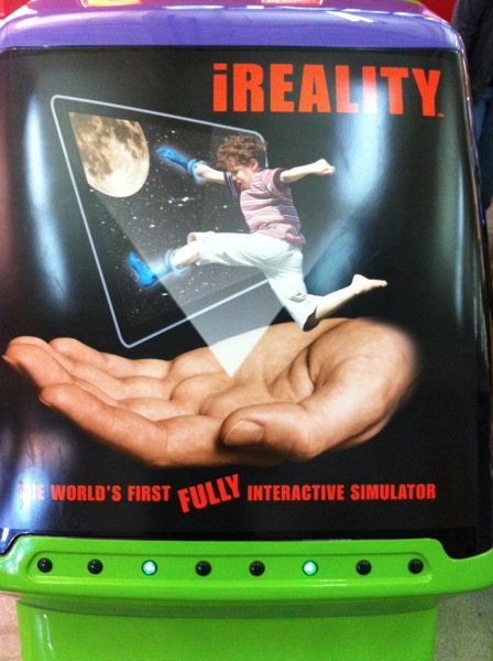 The heavy hitter was the iReality. It takes some serious arrogance for a mall ride to claim The World's First FULLY Interactive Simulator. Even better, it's blatantly using the iPad to sell this as a ride of the future.